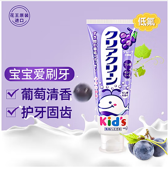 首页> 家庭专场> 花王婴幼儿防蛀护齿木糖醇葡萄味牙膏70g 安全可吞咽
