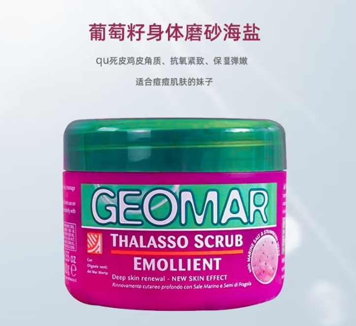 首页> 家庭专场> Geomar吉儿玛葡萄籽身体磨砂海盐 300g