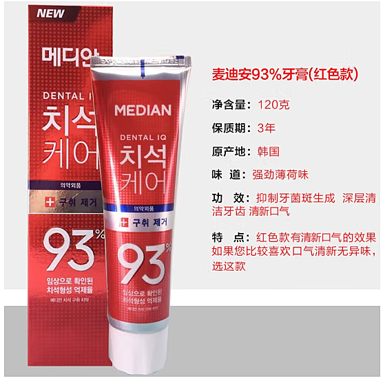 韩国新美迪安93%去牙垢清口气牙膏120g(红色)