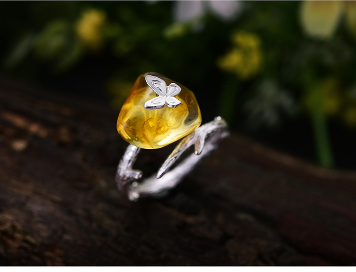 Genovia&Dreamer琥珀蝴蝶可调节戒指